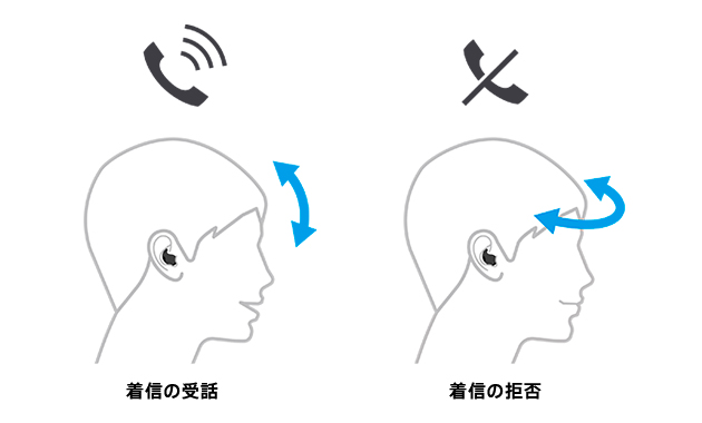 イヤホンのタップやスマホ操作の代わりにを頭を使ったジェスチャーで電話の受話・拒否などの操作が可能です。