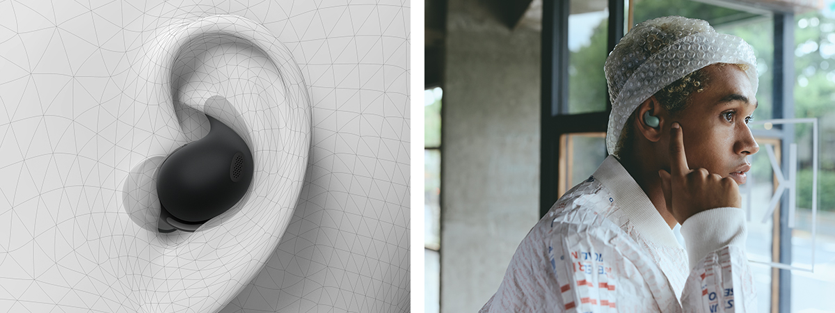 複数のマイクを最適に制御し、高度な音声信号処理を行う高精度ボイスピックアップテクノロジーにより、高い通話品質を実現。5億サンプルを超えるAIの機械学習で構成された装着者の声とそれ以外の環境ノイズを分離するアルゴリズムによって周囲の環境ノイズを抑え、あなたの声をクリアに抽出します。さらに、本体内側のマイクを通話に利用することで、発話者の声をよりクリアに通話相手に届けられます。