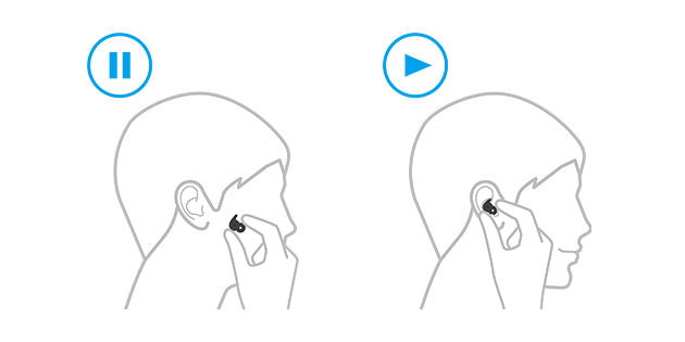 ヘッドホンを装着し音楽を再生している際に、ヘッドホンを一時的に外すと、自動で音楽が一時停止します。タッチセンサーも一時無効になり、誤作動を防ぎます。再度装着すると自動で音楽が再生します(*1)。また、ヘッドホンを外したまま約15分経過すると、自動で電源がOFFになり、バッテリーの消費を防げます(*2)。