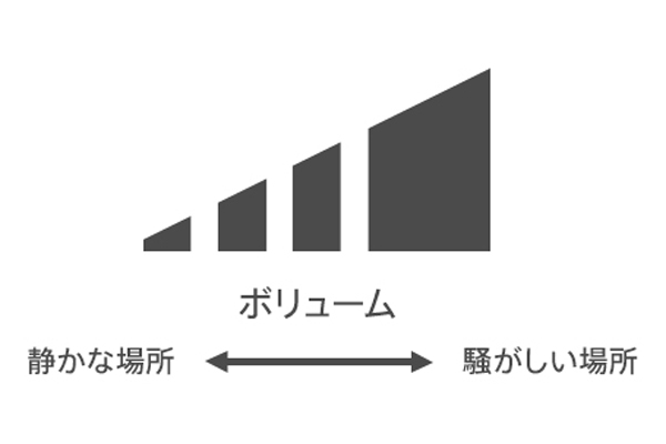 周囲の騒音レベルに合わせて自動で再生音量を調整。スマホで操作しなくても、適切なボリュームで音楽をお楽しみ頂けます。