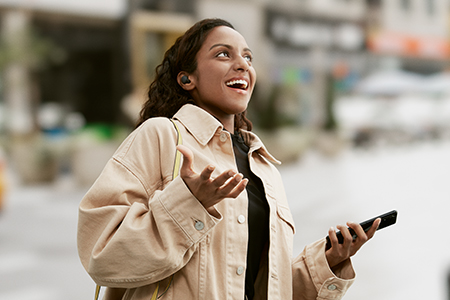 「Auto Play」は、通話や歩行といったユーザーの行動の変わり目をセンシングし、連携している音楽サービスであるSpotifyやEndel、Apple Music内のコンテンツを自動再生します。ヘッドホンがタイミングに応じて音楽を再生する新しい体験の創造で、ユーザーがスマートフォンやヘッドホンを触って切り替えなくても、オンラインとリアルがシームレスに繋がります。