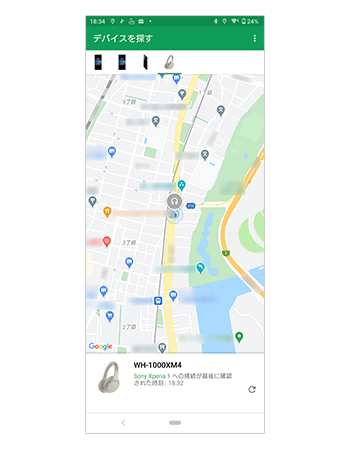 専用のGoogleアプリ「デバイスを探す」をお使いいただくことで、最後にAndroid端末と接続をした場所、時間を地図上で確認することができます。
