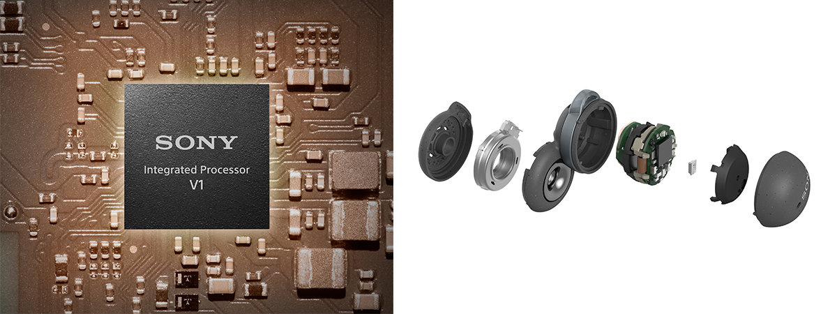 統合プロセッサーV1に搭載しているポータブル向けとして高いS/N比と低歪な特性を持つD/A変換回路およびヘッドホンアンプと新たに独自開発したリング型ドライバーユニットにより、クリアな高音質を実現。