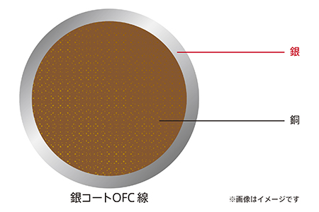 OFC(Oxygen Free Copper)に銀めっきを施した芯線を採用。信号伝送ロスを抑え音の劣化を低減し、なめらかな高音域の再生を実現します。