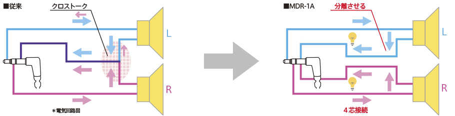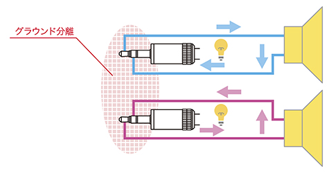 グラウンドを分離し、4芯構成にすることでクロストークを低減。音の広がりと引き締まった低音を楽しめます。
