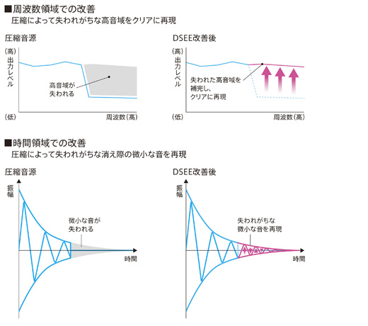 圧縮音源で失われがちな高音域と、消え際の微小な音を再現。広がりのある自然な音質を実現します。
