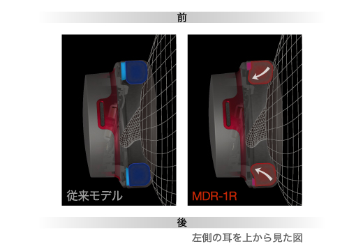 低反撥ウレタンフォームを立体的に縫製したイヤーパッドと、イヤーパッドが内側に倒れ込む構造を採用し、耳を包みこむような快適な装着性と高い気密性を実現。音漏れを低減し、重低音域の迫力をあますところなく再現します。
