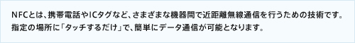 NFC機能搭載のスマートフォンや、おサイフケータイ対応Android搭載スマートフォンなどとのペアリングから接続・切断・接続切り替えが、ワンタッチで行えます。