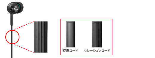コード表面の細かい溝によりからみの原因である摩耗を低減。コードがからみにくいのでリスニング時や持ち歩きも快適です。