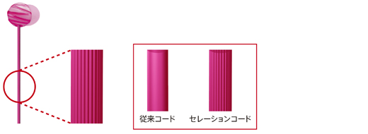 コード表面の細かい溝によりからみの原因である摩擦を低減。コードがからみにくいのでスマートに音楽を楽しめます。