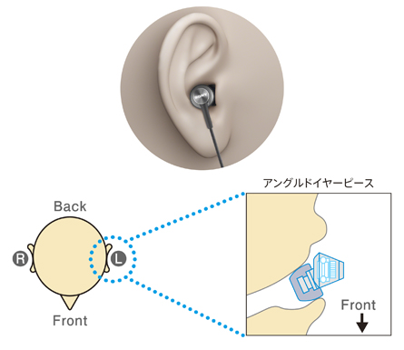 ドライバーの小型化によりアングルドイヤーピース方式を実現。耳の奥まで装着できるので遮音性が向上し、快適な装着感と高音質を両立します。