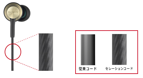 コード表面の細かい溝によりからみの原因である摩擦を低減。ケーブル長アジャスターとの併用で効果的にからみを防ぐので、リスニング時や持ち歩きも快適です。