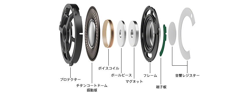 振動板のドーム部にチタン薄膜をコーティング。ドーム部の剛性をあげることにより不要な振動を抑制し、色鮮やかな音楽を再生します。