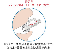 ドライバーユニットを外耳道に対して垂直に配置する装着方式を採用。優れた装着性を維持しながら、直径13.5mmの大口径ドライバーユニットが生み出す迫力の重低音とクリアな中高音をあますところなく耳に届けます。