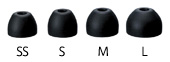 小さい耳にも、Sサイズよりも小さいSSサイズのイヤーピースを付属しました。(SS, S, M, Lサイズを付属)