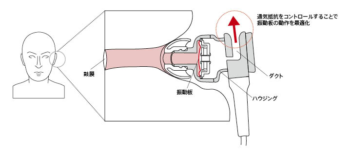 ドライバーユニットから鼓膜までの気密を高めつつ、ハウジング上に設けたダクトにより低域の振動板の動作を最適化。圧倒的な量感の低音を正確なリズムで捉えることで、重低音のグルーヴ感をダイレクトに伝達します。