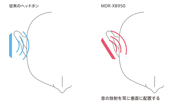 ドライバーユニットの音の放射を耳に垂直に配置する事で、ストレートな音を実現します。