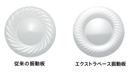 耐振幅特性、耐気圧特性を確保しつつ、ハイコンプライアンス化したエクストラベース振動板により臨場感に満ちた重低音再生を実現しました。