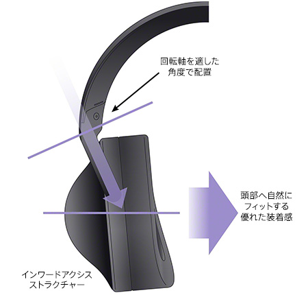 ハウジングの回転軸を内側に向けることで、装着安定性を向上させています。