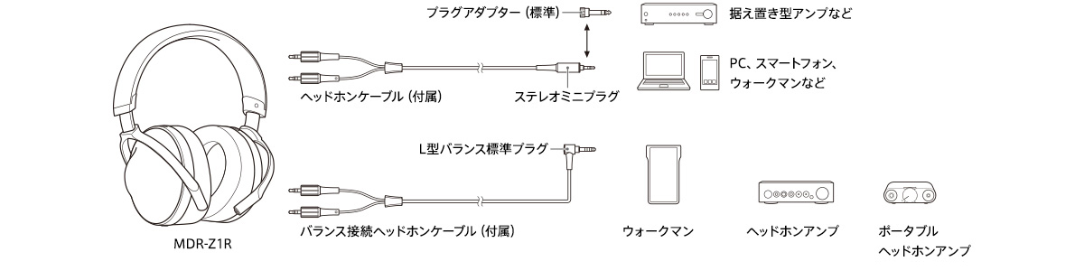 ウォークマンやヘッドホンアンプなど、さまざまな機器との接続も可能。JEITAにて新たに規格化されたφ4.4mmバランス標準プラグに対応している機器となら、より高音質なバランス出力での音楽再生を楽しむ事ができます。