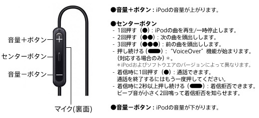 リモコンにマイクを内蔵。iPhoneでハンズフリー通話が可能です。また、ボイスメモに対応したiPodでボイスメモを録音できます。