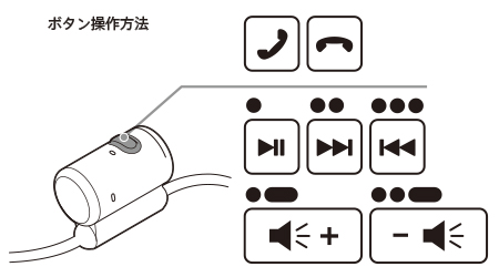 マルチファンクションボタンひとつでペアリング動作、音楽再生/停止、曲送り/曲戻し、ハンズフリー通話/終話の操作が可能です。