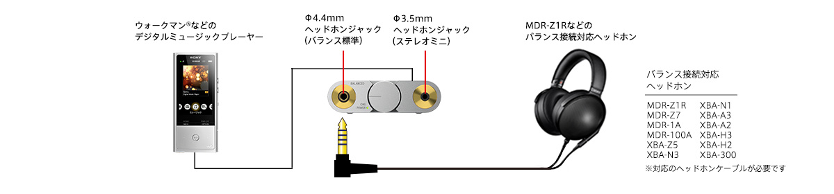 *1 ハイレゾリューション・オーディオ対応ウォークマン(R)の音声再生機能にのみ対応しています。対応機種について詳しくはこちら