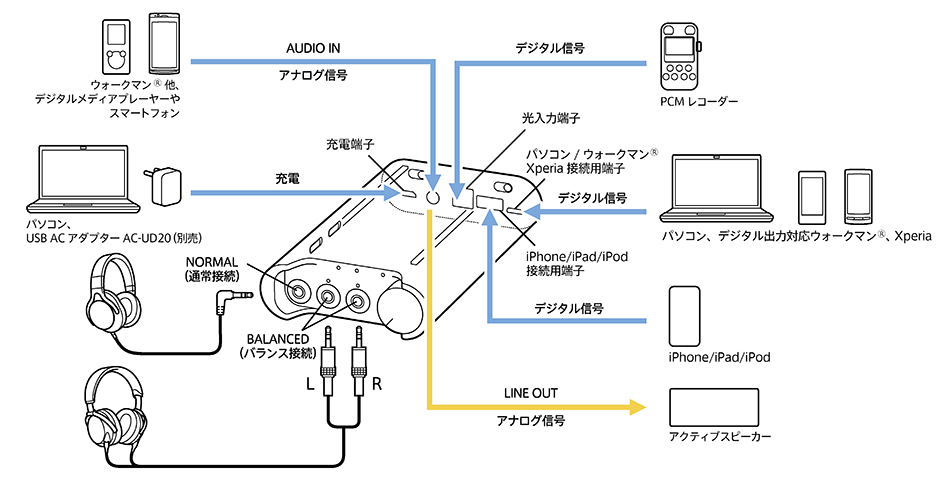 ※1 バランス出力には対応のヘッドホン、ヘッドホンケーブルをご使用ください(通常のステレオ出力ヘッドホンアンプとしてもご利用になれます)