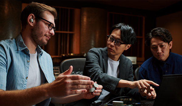 音楽制作の工程は大きく分けて、レコーディング、ミキシング、マスタリングというステップがあります。中でも楽曲におけるマスタリング作業は、最終音質を調整する、楽曲制作における仕上げの工程。それを手がけるマスタリングエンジニアはアーティストの思いをくみ取り、楽曲を作品として仕上げるプロフェッショナルです。今回ソニーはWF-1000XM6の開発過程で、様々な分野で活躍し、国際的な音楽賞であるグラミー賞受賞/ノミネート歴のある世界的に著名な4人のマスタリングエンジニアと「共創」を行いました。実際に音楽制作スタジオへ足を運び、さまざまな音楽ジャンルを手がける彼らと意見交換を行うことで、あらゆる音楽作品の表現や魅力を引き出す高次元の音質を実現しています。