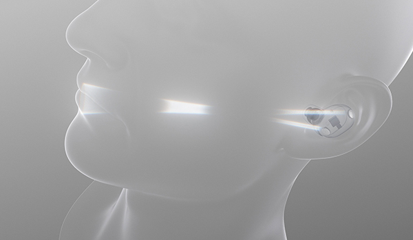 骨伝導センサーにより装着者の頭蓋骨を通して伝わる音声の振動を検知し、声だけを分離します。これにより、騒がしい環境下など、周囲のノイズ状況に左右されず装着者の音声を拾うことができます。