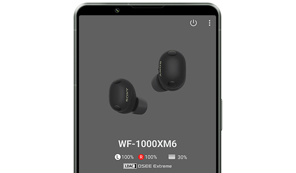 イヤホンのバッテリー残量、接続中のコーデック、DSEE ExtremeのON/OFFなど、イヤホンの現在の状態を一目で確認できます。