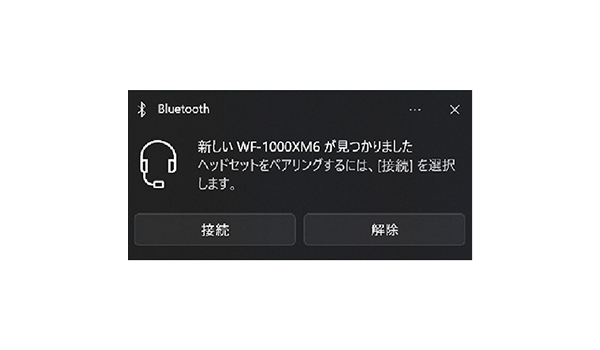 イヤホンをペアリングモードにし、Windows10またはWindows11に近づけると、ペアリングのガイダンスがポップアップで出現します。接続のわずらわしさが解消されます。