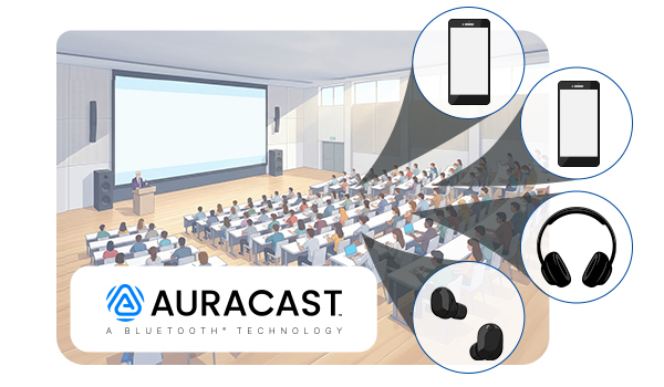 LE Audioの機能で、1つの音声を複数の受信機に同時に無線で配信できる技術です。これにより、公共の場でのサイレントTVや、映画館や空港での場内アナウンスを、補聴器やイヤホンで直接聞いたり、友人同士で同じ音楽を共有したりすることが可能になります。