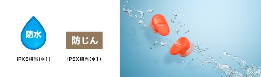 *1 JIS/IEC IP55相当(噴流水および塵埃に対する保護等級):あらゆる方向からの噴流水に対して、本体機能を保護するものです。(ヘッドホン音導管(音出口の筒部)を除く)また、塵埃の侵入に対して、電気機器の所定の動作および安全性を保護するものです