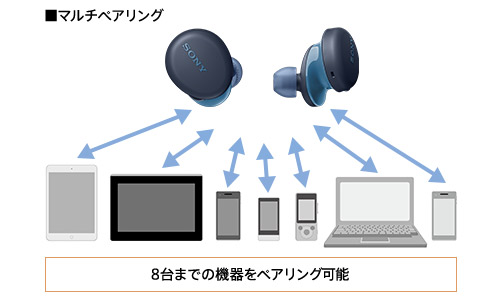 8台までの機器とペアリングできるマルチペアリングに対応。よく使う機器と一度ペアリングしておけば、2回目からのBluetooth接続が簡単になります。