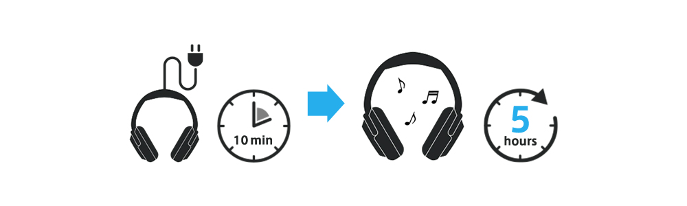 突然の外出時に、10分の充電で5時間再生(*)が可能なクイック充電にも対応。
