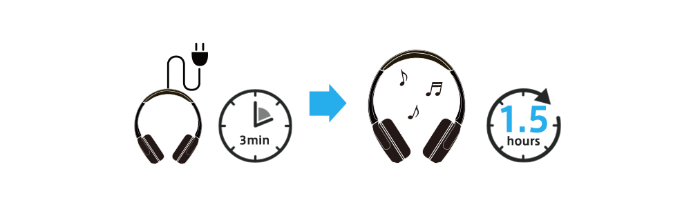 3分の充電で約1.5時間(10分の充電で約5.5時間)再生(*)可能なクイック充電に対応。突然の外出時に便利です。