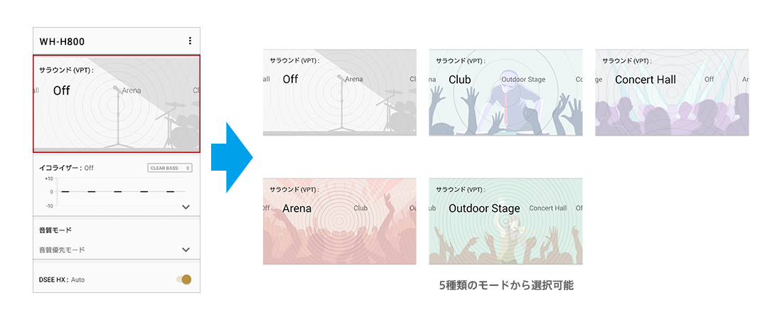 * ハイレゾコンテンツをLDACコーデックで最大転送速度990kbpsで伝送する場合。また、DSEE HX ON時にCDやMP3などの圧縮音源をSBC/AACのコーデックでBluetooth再生する際、最大96kHz/24bitまで拡張(LDAC/Qualcomm(R)aptX(TM)audio/Qualcomm(R)aptX(TM)HD audioによるBluetooth接続時や有線接続時は無効)