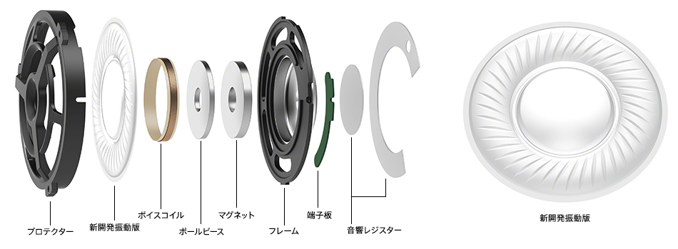 小型でありながらも高音質再生を実現するため、新規開発の口径40mmドライバーユニットを採用。非常に薄型の振動板を採用することで、薄型のハウジングに大口径のドライバーユニットを搭載する事が実現。