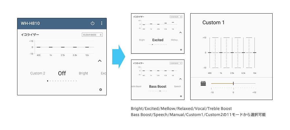 専用スマートフォンアプリ「Headphones Connect」ではサウンドエフェクトやイコライザー設定をカスタマイズするなど、自分好みのサウンドに変えられます。