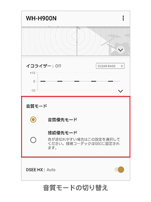 音質モードの切り替えなどの操作も可能です。