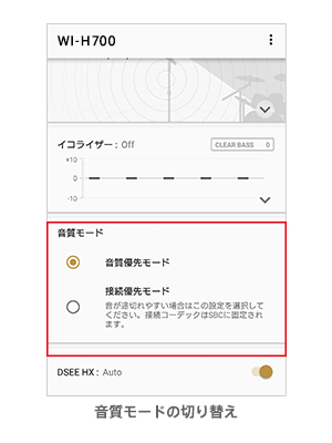 音質モードの切り替えなどの操作も可能です。