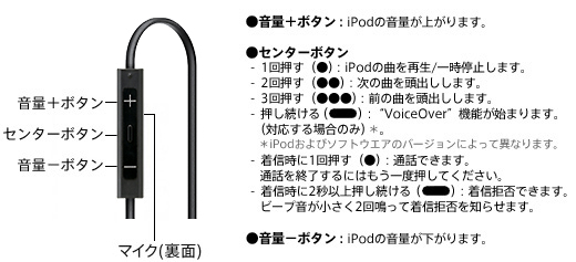リモコンにマイクを内蔵。iPhoneでハンズフリー通話が可能です。また、ボイスメモに対応したiPodでボイスメモを録音できます。