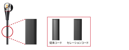 コード表面の細かい溝によりからみの原因である摩擦を低減。スライダーコードとの併用で効果的にからみを防ぐので、リスニング時や持ち歩きも快適です。