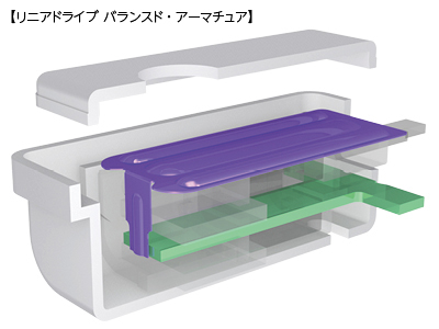振動板一体の連結ロッドを採用。アーマチュアと振動板がダイレクトに連結されることで入力信号に忠実に振動板を駆動します。
