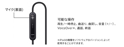 リモコンにマイクを内蔵。iPhoneでハンズフリー通話が可能です。また、ボイスメモに対応したiPodでボイスメモを録音できます。