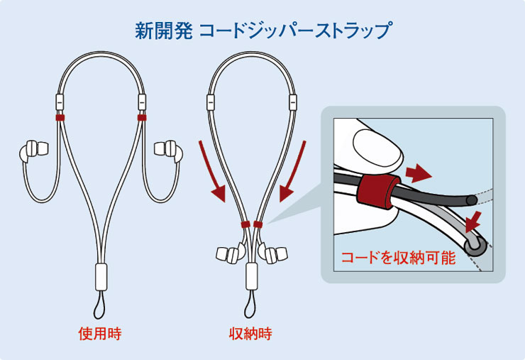 ●ヘッドホンコードの絡みを解消する新開発コードジッパーストラップ