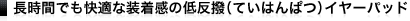 クッション材に低反撥(ていはんぱつ)発泡ウレタンを使用。長時間の使用でも疲れを感じません。また、イヤーパッドの表面やクッション材には遮音性に優れた素材を使用してノイズキャンセリング性能を高めています。