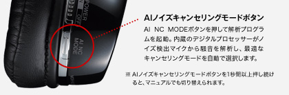 角田 また本機で特徴的な機能としてAIノイズキャンセリング機能があります。「NC500D」は3種類の騒音の性質に最適化されたキャンセリングモードを持っています。これは、ハウジングのところにあるボタンを押すと、約3秒間周囲の音を解析。この結果より3つのキャンセリングモードの中から、自動的に最適なモードを選んでくれるというものです。