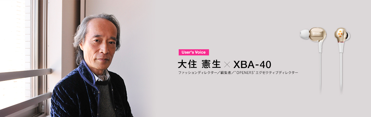 このXBA-40のたたずまいを見て感じるのは、ソニーの商品だな、日本の製品だな、ということですね。ファッションディレクターという職業上、僕はスーツを長年見続けてきています。仕立てのいいスーツ、いい職人がいい素材を使ってきちんと作ったスーツはひと目でわかる。中身のよさは、必ず外見に現れます。逆に言えば、カタチに惹かれるものにはもともと内容が詰まっている。このヘッドホンを手に取ってみるだけで、この中にすごい技術が込められていると感じさせるものがある。このフォルムの独特さも、高級感も、その性能ゆえのことでもあるわけでしょう。これはソニー、ひいては日本のものづくりが伝統的に得意としてきたことだと思うんですね。新しさと歴史、そしてクラフツマンシップが感じられる。その点において、とてもソニーらしいヘッドホンだなと思いました。多くの人に手に取ってみてもらいたいと思いますね。
